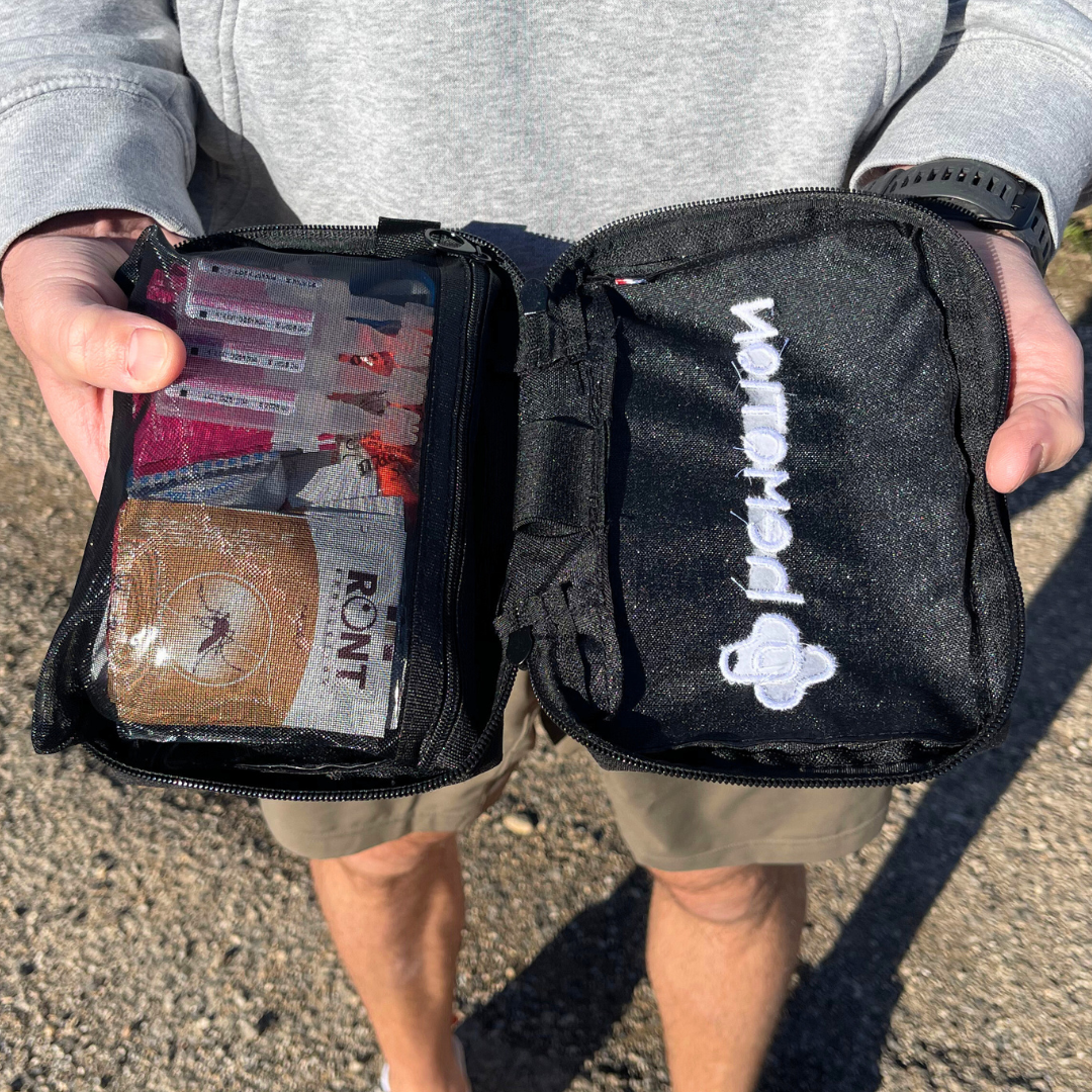 Parce qu’en voyage, on compte les uns sur les autres, ce kit permet de gérer une blessure personnelle comme de venir en aide à ses partenaires d’aventure.
